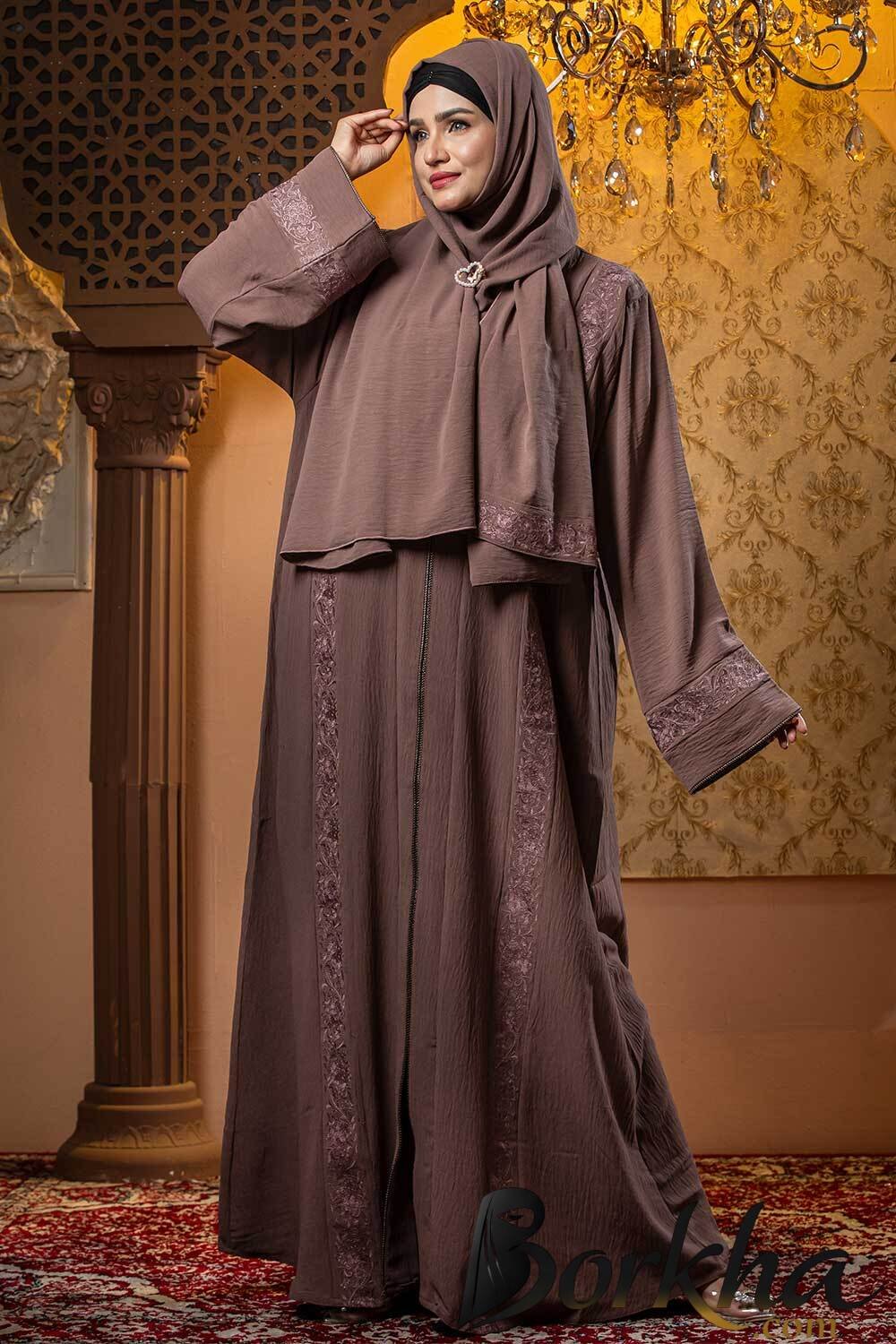 Dark Brown Borka Design with Embroidery & Stone Work | Irani Borka Bazar