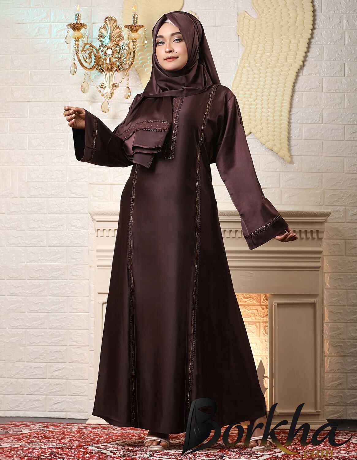 Look Gorgeous & Stay Cool with this New Borka Design. | Size : 50, 52, 54, 56 | Color : Dark Jam | Fabric : Shiny Crystal ( OUR OTHER BRANDS : Designer Lifestyle & Six Lifestyle )