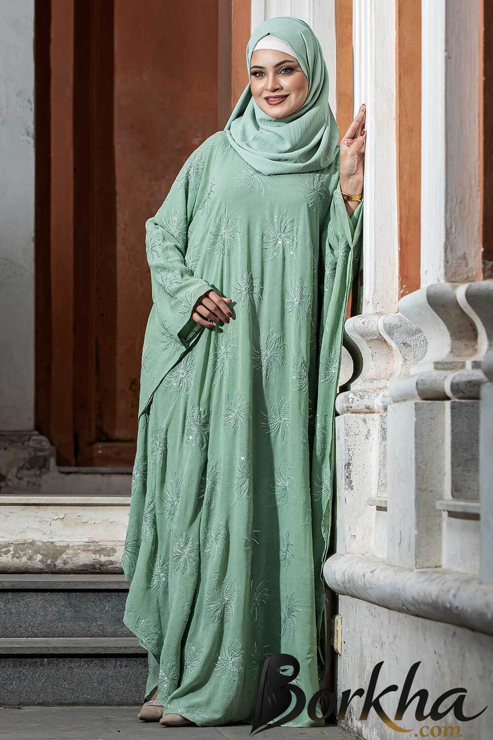 Lemon Mint Color Abaya with Embroidery & Stone Work | Irani Borka Bazar