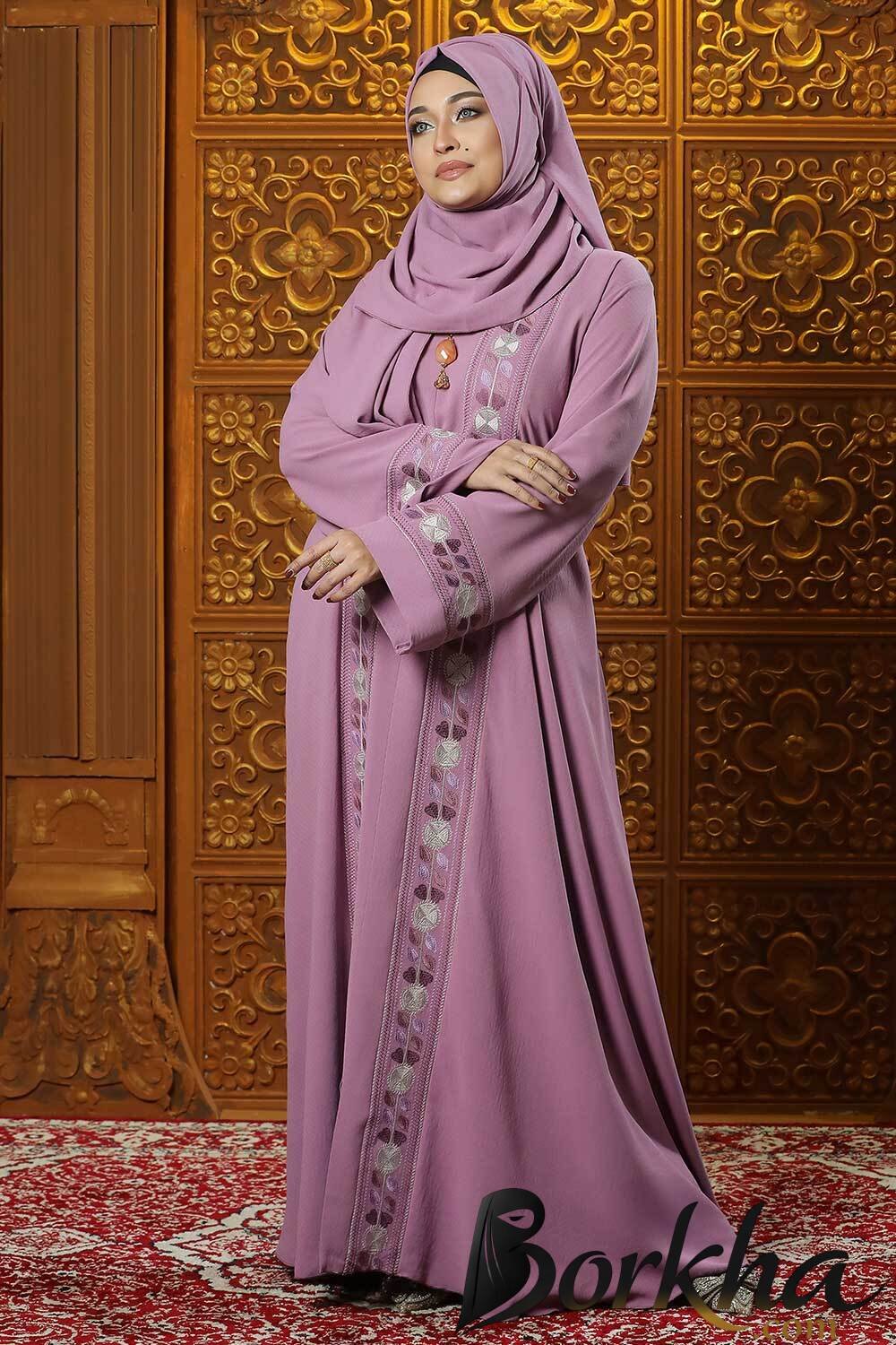 Mauve Pink Color Borka Design with Embroidery Work | Irani Borka Bazar