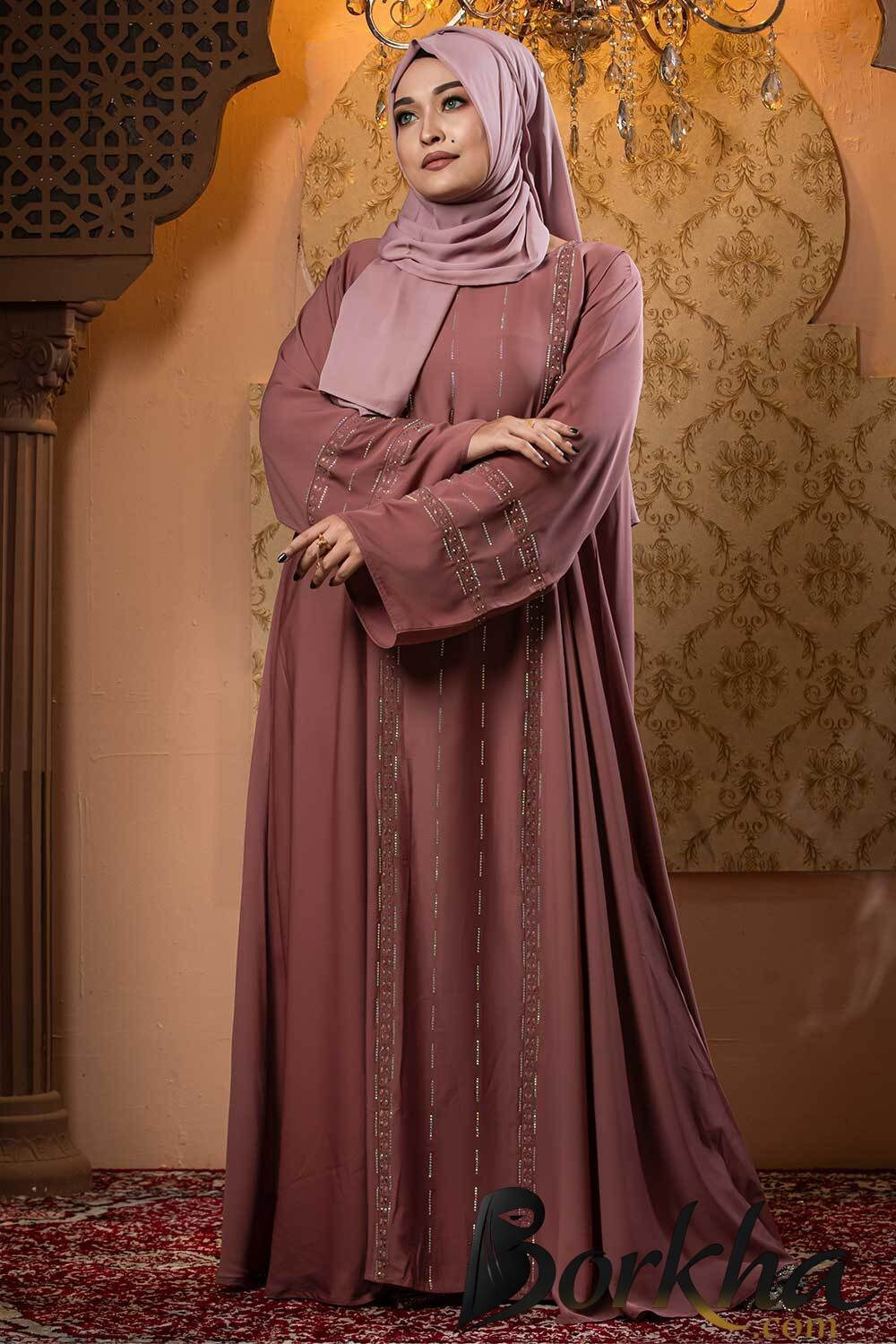 Mauve Pink Color Borka Design with Stone Work | Irani Borka Bazar