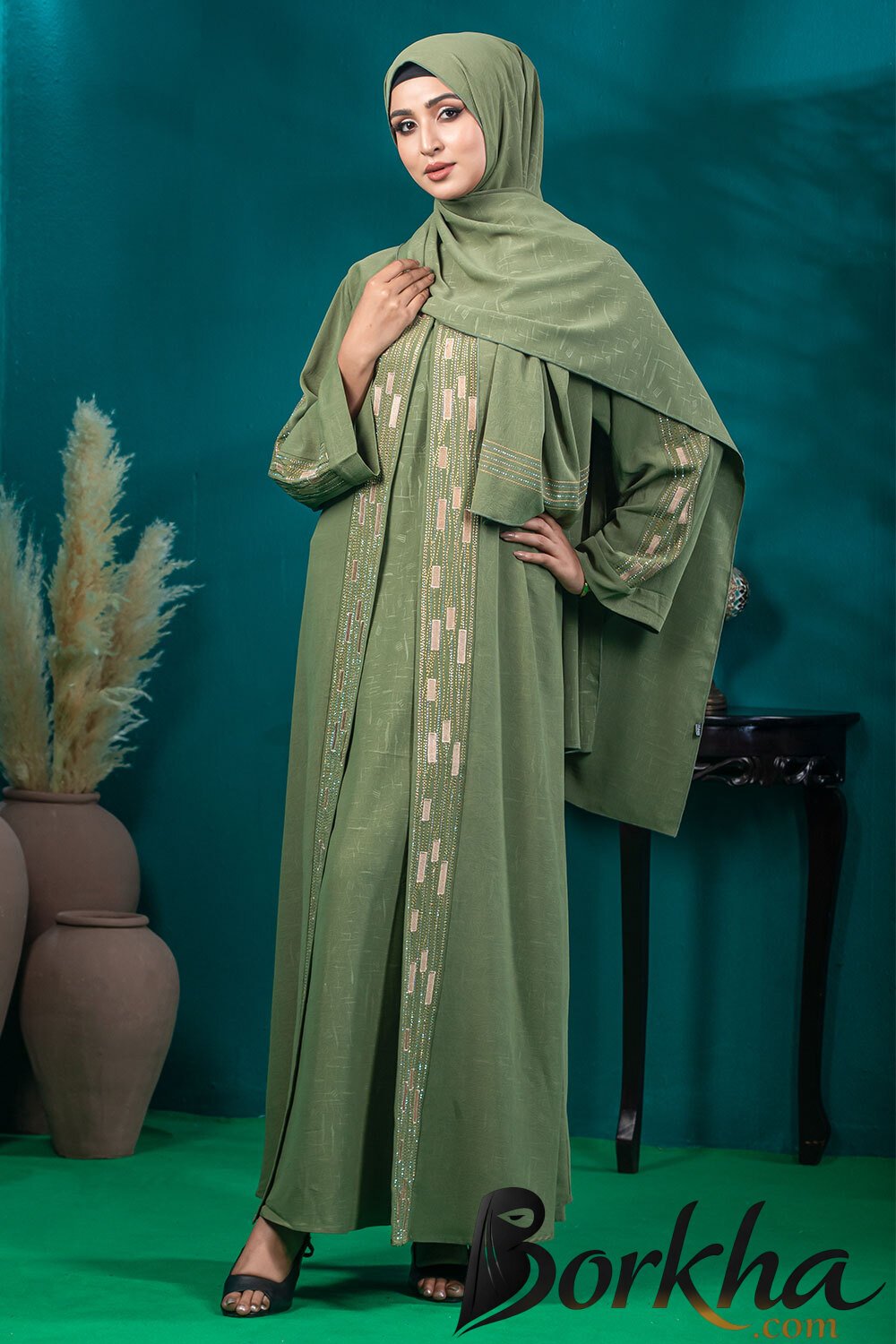 Look Gorgeous & Stay Cool with this New Koti Borka. | Size : 50, 52, 54, 56 | Color : Olive | Fabric : Honey Fabric ( OUR OTHER BRANDS : Designer Lifestyle & Six Lifestyle )